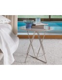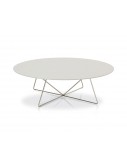 Really original coffee tables and a coat rack that combine Japanese minimalist with Italian handicraft expertise. The metal, gloss gold lacquered, round tubular structure gives the product a different, versatile, architectural appearance depending on your point of view. The tabletops are harmoniously irregular and finished with natural or heat-treated chestnut veneer.