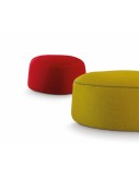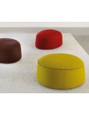 The original Milos pouf has an oval shape that looks great by itself but is also perfect paired with other elements from the Désirée collection. The fabric version features toned decorative seams while the leather one has contrasting, raw edges.