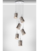 The Fork lampshade is inspired by casual fashion and by an informal, playful and dynamic lifestyle. Creating the same effect as turning on a light inside a camping tent, the light inside the diffuser highlights its patchwork structure as well as its fabric and visible, jeans-like stitching. The concept of Fork takes a range of forms in a complete family of lamps for every environment and time of day. Hanging XL Fork has a fixed diffuser with a large diameter which fits easily into any setting. Its satin effect polymethylmethacrylate screen filters a diffused, anti-glare light downwards. The diffuser is ivory or grey in linen treated using a process which gives it a vintage look.