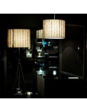 Pylon was named after the metal base, with its embossed textured finish, inspired by the vision of an electric framework in an industrial landscape. It then adds a special touch of fashion and tailoring to this image by combining it with a diffuser in ivory tinted linen coupled with PVC that bestows this lamp with an unmistakable personality. The pure linen fabric - with a purposely uneven weft and warp, dyed and treated against fraying- is moulded like a dress onto the body of the diffuser with hand-pleated folds which give it a 3D shape, recalling an industrial filter or part of a turbine. Designed by the Diesel Creative Team and produced by Foscarini, Pylon is available in two matching versions: floor lamp - which can also be turned into a reading lamp since it is height-adjustable - and suspension lamp. Characterised by its warm and soft luminosity, Pylon is perfect both in a more intimate setting, such as a bedroom or living room, as well as in different communal areas, such as restaurants, public houses or a hotel lobby.