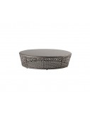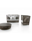 Collection made ​​of high resistance aluminum tube and hand-woven flat synthetic fiber made of high density polyethylene (HDPE), 6-8,5 mm/ 0.24-0.33" wide. The dining tables include a glass top 8 mm/ 0.31" thick. Possibility of creating a wide variety of layouts due to the modularity of its elements.