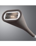 The Aplomb project explores the technological and expressive possibilities of concrete, a rough yet at the same time appealing material, achieving a leap of scale and genre: from large contemporary architectural building to a small designer lamp. Aplomb floor lamp recalls a burning torch, to be grabbed and moved easily to where it is needed. Its light beam is an intense up-light, but it creates no glare because it is completely screened from view by the shape that encloses the light source, that visually takes up space for observers up-front, but with a smaller thickness when observed from the side. Light and material are its absolute focus, without any other elements which would mar its pure design and style.