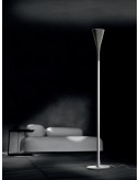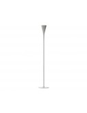 Floor lamp with indirect light. Cement diffuser, made with a special amalgam colored with pigments,produced by pouring the fluid mixture into a mould. Extruded aluminium rod and die cast zinc alloy base coated with epoxy powder paint. The transparent cable is fitted with a dimmer which can be used both to adjust the level of luminous intensity gradually or as the on/off switch.