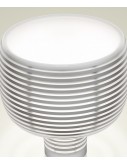 Table or floor lamp with diffused light. Matt injection moulded batch-dyed ABS diffuser consisting of 6 assembled modules. Upper diffuser in opaline polycarbonate, white epoxy powder coated metal base. The cable is fitted with the dimmer, for the gradual adjustment of brightness.