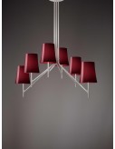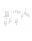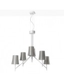 A system of lamps, where a variable number of arms with a white finish, as slender as the branches of a tree, support small white, grey, orange and amarant diffusers. Thanks to an additional canopy and cable set, birdie pendant can suit different ceiling heights.