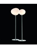 Floor lamp with diffused light. White satin finish hand-blown diffuser achieved using glass blowing procedure without turning the glass in the mould (referred to as "stationary"), subject to immersion in acid. A matt transparent injection-moulded polycarbonate ring nut is incorporated into the glass. Metal helical section rod covered with liquid coated rigid polyurethane and epoxy powder coated metal base. The transparent cable is fitted with a dimmer which can be used both to adjust the level of luminous intensity gradually or as the ON/OFF switch.
