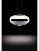What is O-Space? A luminous spaceship and sensual, a chest containing an invisible light, a shape that can be adapted to any style of decoration and of life? The value of this lamp of suspension is precisely that of a signal universal, a vessel that each can fill with their own meanings: like the vowel of a new alphabet. In effect, the graphic signal of O-Space is represented by a sphere crushed and cut on two sides. Thus smooth and geometric at the same time, very original and characterizing, the illumination is both reflected to the inside as directed down. The vault in polyurethane protects against glare and hides the cables for power, creating a completely free area in the interior.