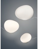 A product of natural inspiration and extensive research, Poly-Gregg shape is reminiscent of a large pebble, its surface polished by the water. Pure volume with a familiar ease of interpretation, yet one that is surprising, because Poly-Gregg asymmetric shape changes depending on the point of view of the person observing it. In the home environment the warm, uniform light produced by the white diffuser and its essential style have a strong functional and decorative value. Moreover thanks to the closed shape of the diffuser, the bulb is screened in all directions, which protects from dazzle. Made of polyethylene, a light-weight material that is also shock-resistant, Poly-Gregg is available in three different sizes: medium, large and extra-large, to blend in seamlessly with any setting and create free compositions.