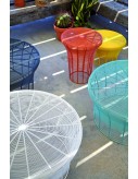 This collection of stools and low tables is based on a traditional Indian furniture technique of weaving metal wires around a metal frame. The spacing between the wires is gradually widened, creating a gradation effect. A design created through a small change to an existing technique.