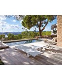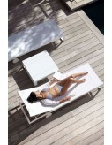 Flat is a collection of outdoor furniture that we designed for GANDIABLASCO in 2008. Five years on, its success has been such that we have continued to design new pieces. It is a balanced and flexible collection; an essential formal concept, with a light structure and a considerable addition of fabric. The Flat Chaiselounge is a designer chaiselounge made from welded thermo-lacquered aluminium, wrapped up in a fabric body of Batyline that can be customised in the colour and texture of your choosing. More than just an outdoor chaiselounge, this is contemporary, elegant and sober, designed for the enjoyment of any outdoor space.