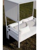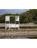 Made of thermo-lacquered aluminium profiles, Solid Surface plate (tables) and polyethylene (chaiselongue). 100% recyclable. Optional polyurethane foam rubber covered with water-repellent fabric. Optional removable fabric cover.