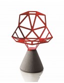 Chair_One is a truly unique seat. The shell is a structure of flat geometric shapes that join up around the edges, like a soccer ball. The shape was the fruit of lengthy preparatory studies, using sketches, cardboard models and prototypes before moving on to production in die-cast aluminium. The chair comes in a choice of finishes: it may be polished for truly durable brilliance, treated with sputtered, fluorinated titanium, or painted for outdoor use. It is available in two versions: a stackable chair with aluminium profile legs, which may be polished, anodized or painted, to meet any needs for home, contract or outdoor settings; or a fixed or swivel chair with a cement base painted transparent that enhances its pleasingly rough texture, typical of contemporary art and architecture. Year: 2004.