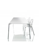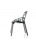 Stacking chair. Legs in polished, anodised or painted aluminium. Seat in die-cast aluminium polished or treated with sputtered fluorinated titanium and painted in polyester powder. Versions for outdoor use available. Flame-retardant.