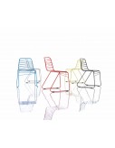 Stacking chair. Frame in steel rod, cataphoretically-treated and painted in polyester powder. Suitable for outdoor use.