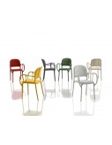 Chair with arms. Polypropylene with glass fibre added. Air-moulded. Silky touch finish. Seat/back cushion in expanded polyurethane with cover in fabric (Fidivi “King L Kat” e “King L”).