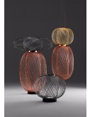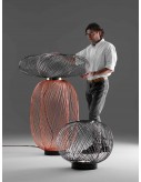 Floor lamp. Structure (rods) in black, golden or copper electroplated steel. LEDs module is placed on the base. Provides ambience light. Switch placed on electric cord.