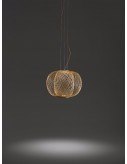 Suspension lamp. Structure (rods) and canopy in black, golden or copper electroplated steel. Two LEDs module are placed at the bottom edge of the structure. One facing up and the other facing down, provide ambience and direct light.
