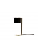Table lamp. Stem in brushed brass, electroplated copper matt, graphite matt or glossy black lacquered. White opal matt or glossy black blown glass diffuser. White or black marble base. Dimmer placed in electrical cord. Diffusers, stems and bases can be combined.