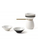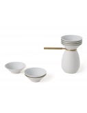 In 1616, porcelain stones were discovered at Izumayama mountain, which gave birth to Japan’s very first porcelain. In the Edo era, many tableware artifacts belonging to Japanese feudal lords were made from Arita porcelain, manufactured in the northern part of Kyushu Island. After a research trip to Japan, Neri&Hu were inspired to reinterpret this historic manufacturing technique by using it in the production of the Arita collection for Stellar Works. The result is a contemporary dining collection with a 400 year old story behind it. These containers inspired by Chinese traditional wine bottles offer two sizes for cold or warm liquids where the cups for drinking can be stacked at the neck of the bottle to form a visually interesting and complete setting. The brass holder offers a graceful detail to the simple white shape.