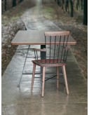 Crème has developed a contemporary wood and steel chair inspired by the traditional Windsor form. By exchanging the traditional wooden spindles and stretcher of the Windsor back with steel, Crème has produced a new chair that feels both contemporary and traditional at once. This exchange suggests the new life and design that can be breathed in to used or well-worn objects and furnishings. Aside from the tradition spindle back, Crème has designed several other backs that can be substituted in to fit any design. Custom backs, multiple wood species and steel finishes are available.