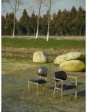 Inspired by the chair they designed for restaurant 108 in Copenhagen, the collection consists of a beautifully crafted range of upholstered wooden furniture that explores the beauty of narrow silhouettes. All items feature narrow legs that elevate and support, striking a perfect balance between mid-century Danish and classic Japanese design. The collection is a tribute to heritage and craft, embodied in a timeless, flowing design, while remaining modern and comfortable. The collection stands for quality craftsmanship and materials. Furniture items are crafted from quality walnut and ash and seating features thick leather to maximise comfort. Decoration is kept to a minimum to enhance the sense of detail and shape.