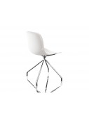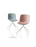 Chair on 4 star base. Available with arms and swivel version for both. Versions for outdoor also available. Seat in beech plywood, in polycarbonate, in polypropylene or in polypropylene covered in fabric.
