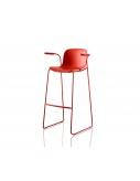 Version on sledge also with arms available. Frame in steel, chromed or painted in polyester powder. Seat in beech plywood or in polypropylene. Versions for outdoor also available.