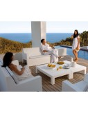 The JUT collection consists of different parts for projects both exterior and interior modern and avant-garde: chair, sofa, chair, chair, chair, two tables of different sizes, extendable table, stools and high table. With the JUT collection, it imposed a new aesthetic in furniture polyethylene resin manufactured by rotational moulding. It’s very difficult to achieve with this manufacturing process, angular shapes are a single proposal so far. VONDOM offers these pieces in diverse colours, very alive tones that contribute a more original sound to the furniture. Ergonomics, functionality and ecology of the furniture JUT are other key features in the VONDOM designs. Drain holes for water and buttresses ̈ ensure maximum comfort to stretch or sit. The innovative and recyclable material is more demanding market to ensure prolonged use supporting the most extreme weather conditions keeping their colours during its lifetime. All these concepts become the best solution furniture both indoors and outdoors. The JUT, unique in its kind, collection is made with special moulds designed by VONDOM and manufactured by a technological process with which exclusive pieces are obtained.
