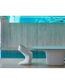 The collection results from “genetic mutation experiments” between the iconic languages of pagodas and UFOs. It is characterized by the opposition of negative and positive shapes. This creative approach gave birth to a Marta Pan inspired monolithic, fluid and sculptural line that encourages comfort and relaxation. Its items make it possible to create different combinations which are easily adaptable to outdoor spaces thanks to its elegant and resistant materials. The colours, range of finishes and interior lighting expands the possibilities to create different environments.